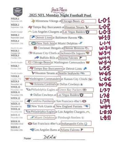 LAST PLACE: Person with the Worst W-L Record Wins $40