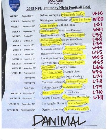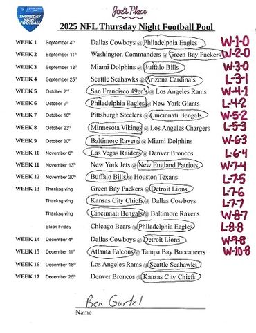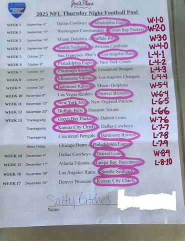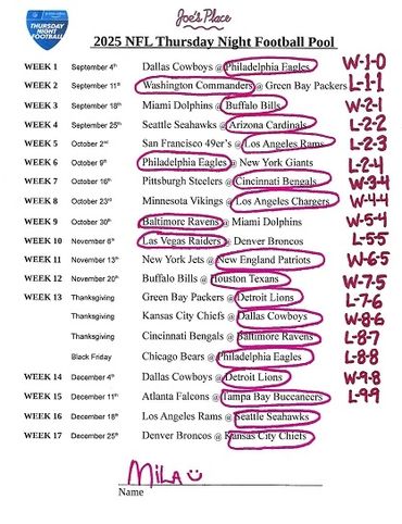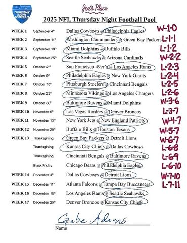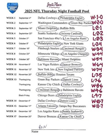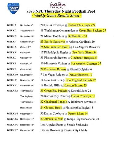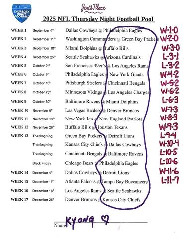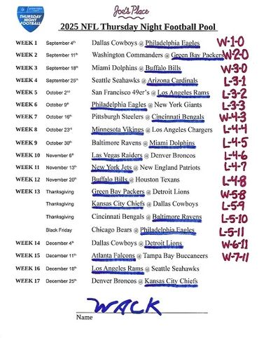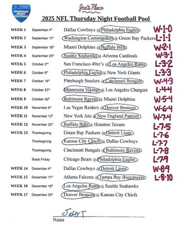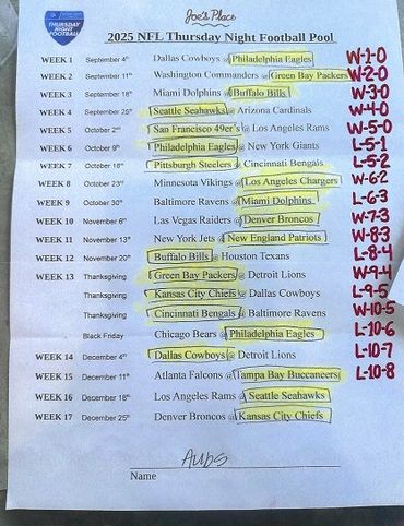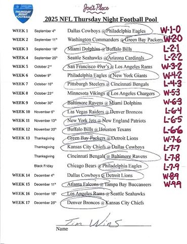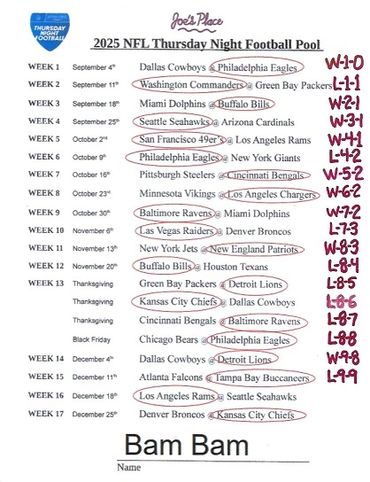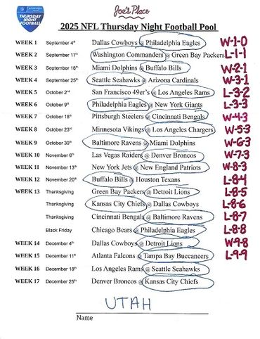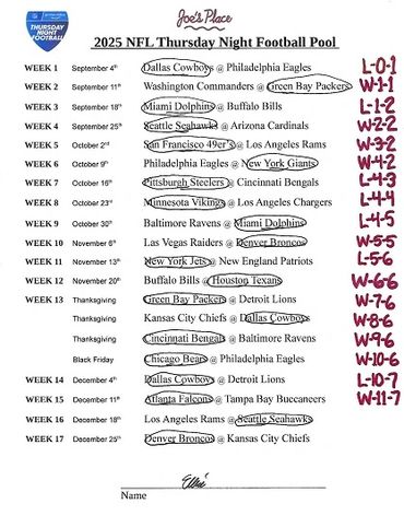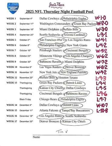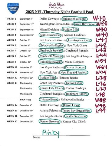 THURSDAY NIGHT FOOTBALL POOL
